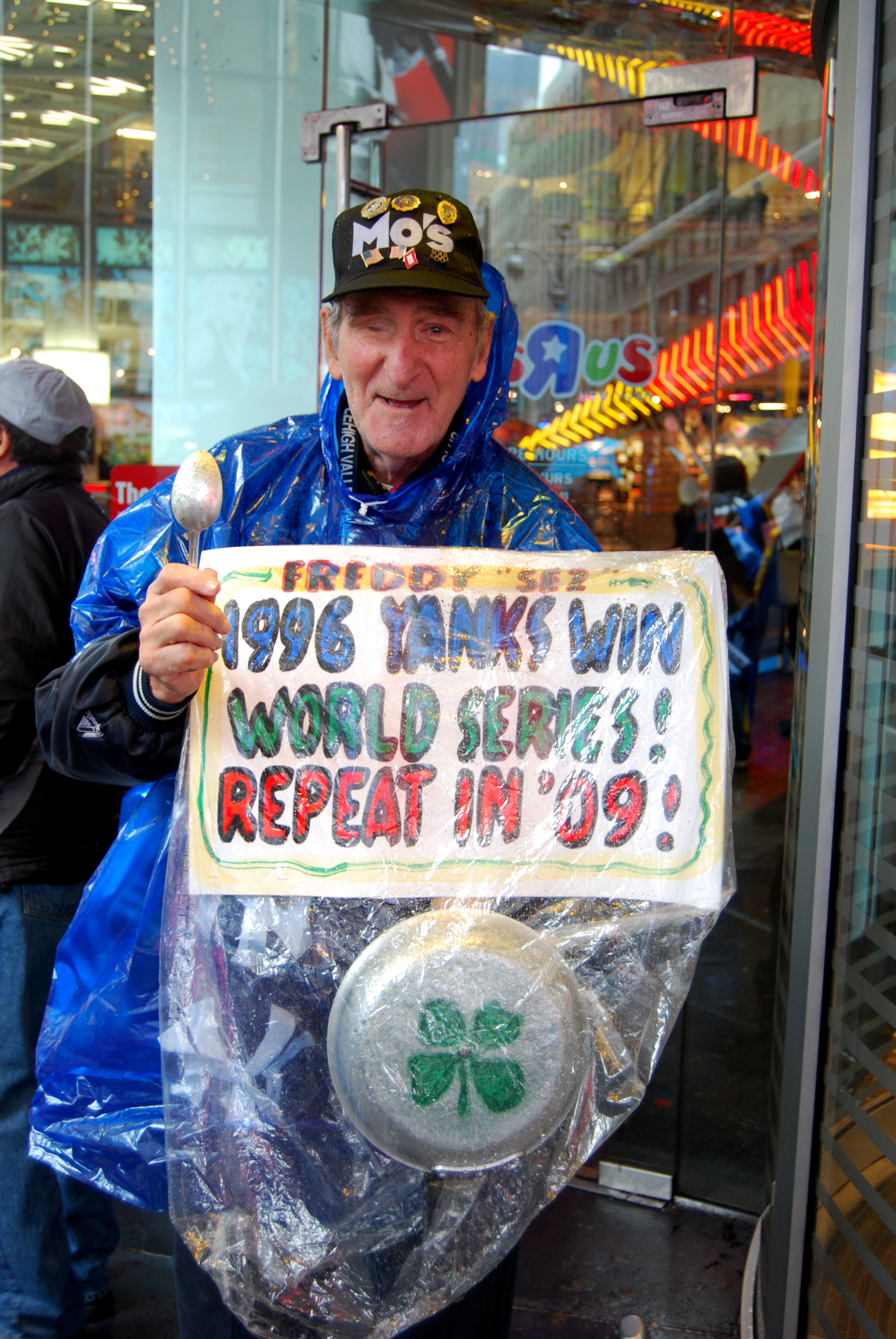 And then there was Freddy Schumann, known to fans as Freddy “Sez”, an 84 year-old who’s been a fixture at Yankees games for the past two decades.